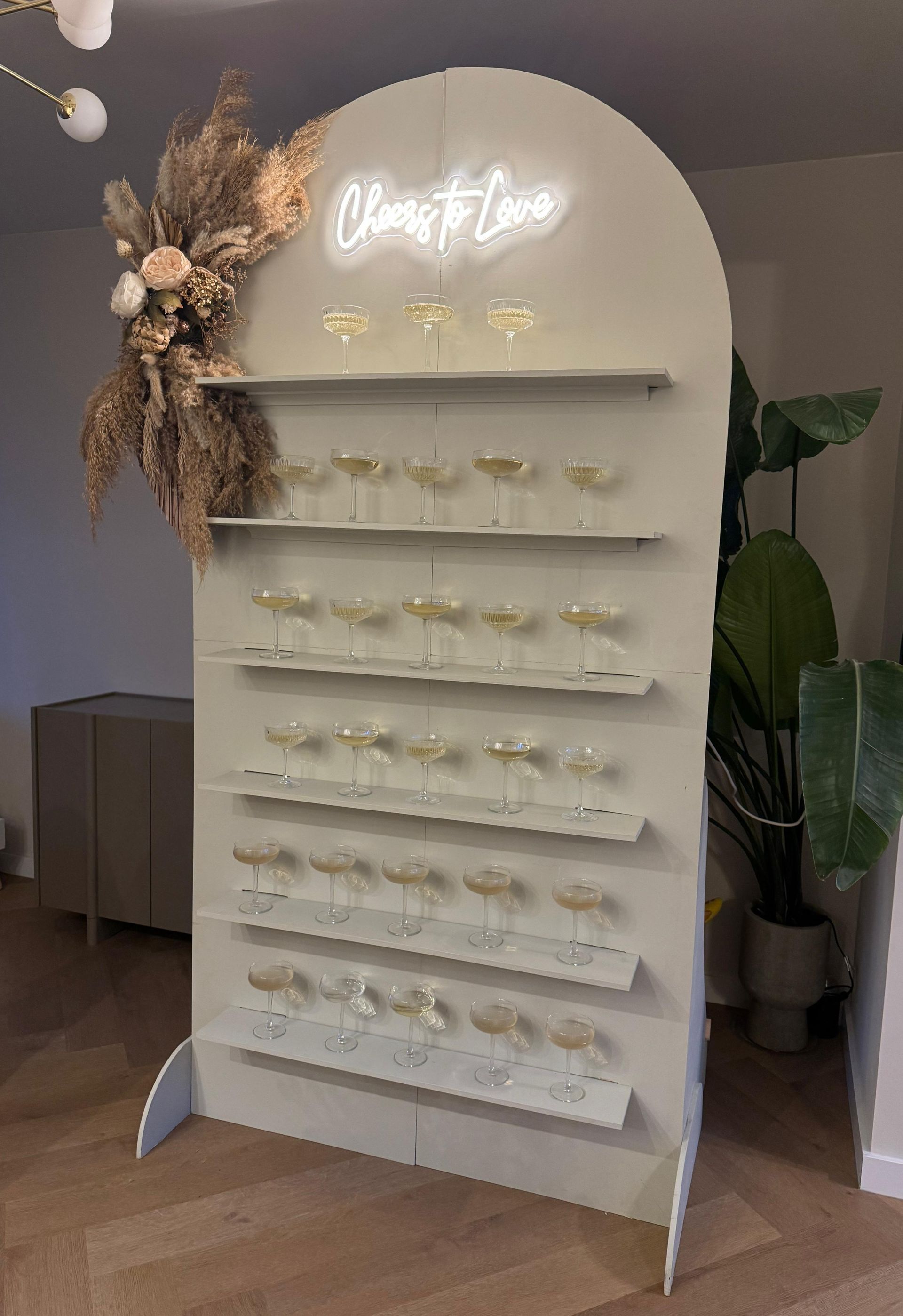 Een stylevolle eyecatcher voor ieder moment. De Celebration Wall combineert beleving en gemakt: gasten pakken zelf een perfect geserveerd drankje - of dat nu een cocktail, champagne of shotje is. Ideaal voor ontvangstmoment, toostmomenten en feestelijke verrasiingen. Een unieke toevoeging die sfeer, luxe en plezier samenbrengt.